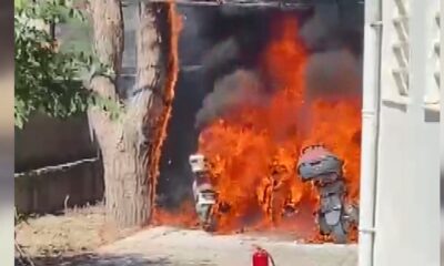 Mustafakemalpaşa ilçesi Yunusemre Mahallesinde, mesleki eğitim merkezinin bahçesinde motosikletlerin park edildiği alanda saat 11.30 sıralarında yangın çıktı. Alevlere ilk müdahaleyi görevliler yangın tüpleriyle yaptı. Çevredekilerin ihbarı...