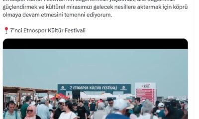 Cumhurbaşkanı Recep Tayyip Erdoğanın eşi Emine Erdoğan, Dünya Etnospor Birliği tarafından düzenlenen 7nci Etnospor Kültür Festivaline ilişkin sosyal medya hesabından yaptığı paylaşımda, “Etnospor Kültür Festivalinin değerlerimizi...