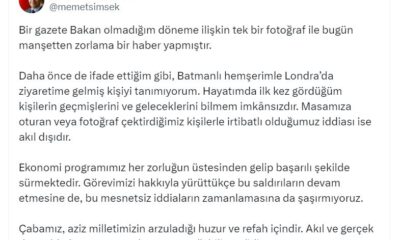 Bakan Şimşek, sosyal medya hesabından yaptığı açıklamada, “Bir gazete bakan olmadığım döneme ilişkin tek bir fotoğraf ile bugün manşetten zorlama bir haber yapmıştır. Daha önce de...