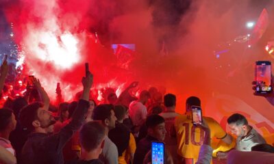 Davul zurna eşliğinde göbek atan Galatasaraylıların birçoğunun sarı-kırmızılıların yıldız golcüsü Victor Osimhenle özdeşleşen yüz maskesini takması dikkat çekti. Galatasaraylılar takımda kiralık olarak forma giyen Osimhenin bonservisinin...