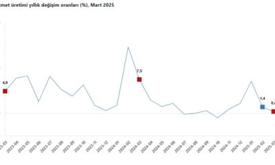 TÜİK, Mart 2025 dönemine ilişkin hizmet üretim endeksi verilerini açıkladı. Buna göre; hizmet üretimi bir önceki yılın aynı ayına göre yüzde 0,4 arttı. Aynı ayda ulaştırma...