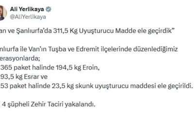 İçişleri Bakanı Ali Yerlikayanın, sosyal medya hesabından yaptığı açıklamaya göre; Van ve Şanlıurfa Cumhuriyet başsavcılıkları ile Emniyet Genel Müdürlüğü koordinesinde Şanlıurfa ile Vanın Tuşba ve Edremit...