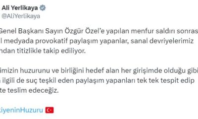 Bakan Yerlikaya, sosyal medya hesabından yaptığı açıklamada, “CHP Genel Başkanı Sayın Özgür Özele yapılan menfur saldırı sonrası sosyal medyada provokatif paylaşım yapanlar, sanal devriyelerimiz tarafından titizlikle...