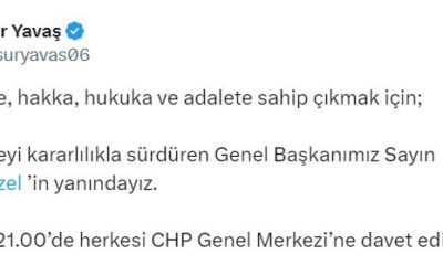 Mansur Yavaş, sosyal medya hesabından yaptığı açıklamada, “Demokrasiye, hakka, hukuka ve adalete sahip çıkmak için; bu mücadeleyi kararlılıkla sürdüren Genel Başkanımız Sayın Özgür Özelin yanındayız. Bugün...