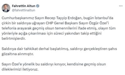 İletişim Başkanı Altun: Cumhurbaşkanımız Sayın Recep Tayyip Erdoğan, bugün İstanbul’da çirkin bir saldırıya uğrayan CHP Genel Başkanı Sayın Özgür Özel’i telefonla arayarak geçmiş olsun temennilerini ifade...