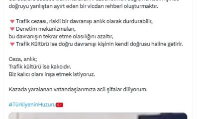 İçişleri Bakanı Ali Yerlikaya, sosyal medya hesabından bugün Konya’nın Karatay ilçesinde direksiyon hakimiyetini kaybeden M.Ç.nin, önce karşı şeritten gelen çekiciye, ardından başka bir araca çarptığı kazanın...
