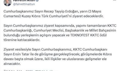 İletişim Başkanı Fahrettin Altun, sosyal medya hesabından yaptığı açıklamada, “Cumhurbaşkanımız Sayın Recep Tayyip Erdoğan, yarın Kuzey Kıbrıs Türk Cumhuriyetini ziyaret edeceklerdir. Sayın Cumhurbaşkanımız ziyaret kapsamında, yapımı...