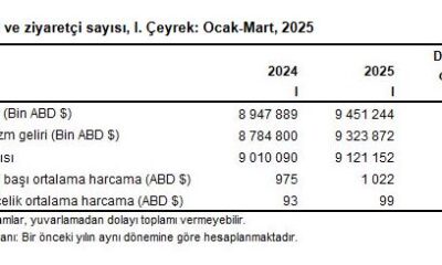TÜİK, 1inci çeyrek turizm istatistiklerini açıkladı. Buna göre; turizm geliri bir önceki yılın aynı çeyreğine göre yüzde 5,6 artarak 9 milyar 451 milyon 244 bin dolar...