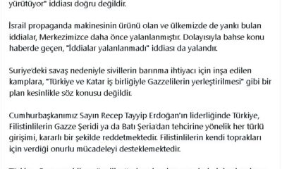 DMMnin sosyal medya hesabından yapılan açıklamada, “Bazı basın yayın organlarında yer alan, Türkiye ve Katar, sürgün edilecek Gazzeli sivilleri Suriyenin kuzeyindeki kamplara yerleştirme planı yürütüyor iddiası...