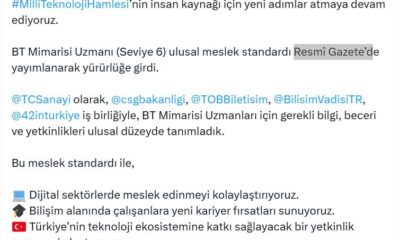 Sanayi ve Teknoloji Bakanı Mehmet Fatih Kacır, sosyal medya hesabından yaptığı açıklamada, “Milli Teknoloji Hamlesinin insan kaynağı için yeni adımlar atmaya devam ediyoruz. BT Mimarisi Uzmanı...