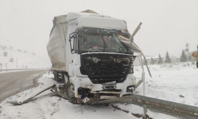 Kaza, akşam saatlerinde Bayburt-Erzurum karayolu Kop Dağı mevkisinde meydana geldi. M.K. idaresindeki 28 K 1015 plakalı TIR, kar nedeniyle kontrolden çıkıp, çelik bariyeri de aşarak yol...