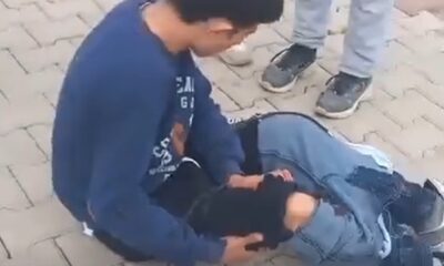 Eskişehir’de bir grup çocuk, camiden çaldıkları yangın tüpünü, birbirinin üzerine sıktı. Çocuklardan biri yoğun karbondioksit gazına maruz kaldığı için bayılırken, arkadaşının yangın tüpündeki gazı sıkmaya devam...
