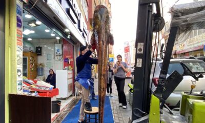 Çorlu’da balıkçılık yapan Barış Bayırlı, Meriç Nehri’nde yakalanan 3 metre boyunda, 150 kilo ağırlığındaki yayın balığını satın alıp, tezgahında sergilemeye başladı. Forkliftin ucuna asılıp sergilenen balığı...