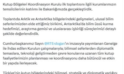 Bakan Kacır, sosyal medya hesabından yaptığı paylaşımda, “Kutup Bölgeleri Koordinasyon Kurulu ilk toplantısını ilgili kurumlarımızın temsilcilerinin katılımı ile bakanlığımızda gerçekleştirdik. Toplantıda Arktik ve Antarktika bölgelerindeki gelişmeleri,...
