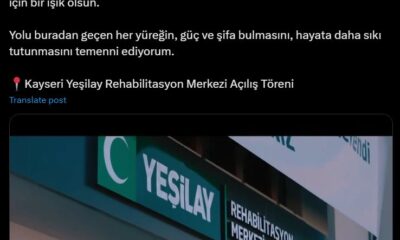 Emine Erdoğan, sosyal medya hesabında, Kayseri Yeşilay Rehabilitasyon Merkezinin açılışından görüntüler paylaşarak, “Bazı kapılar yalnızca açılmaz, aynı zamanda umut olur. Yeşilay Rehabilitasyon Merkezleri, hayatını yeniden inşa...