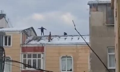 Sultangazi Yunus Emre Mahallesinde okulların tatil olması sebebiyle evlerinde olan 2 çocuk, öğle saatlerinde 5 katlı binanın çatısına çıkarak biriken karlarla oynamaya başladı. Kiremitlerin üzerinde birbirlerine...