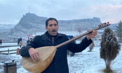 Yüksel Öztürk, yerli ve yabancı turistlerin yoğun olarak ziyaret ettiği Kars Kalesine geldi. Burada kuraklığa dikkat çeken Öztürk, kar sevincini, sazının teline vurup, şu sözlerle dile...