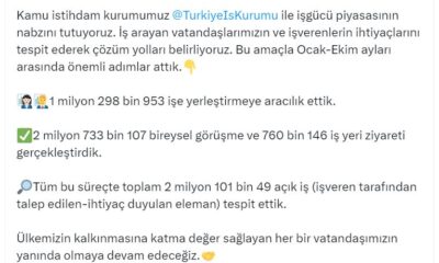 Bakan Işıkhan, sosyal medya hesabından yaptığı açıklamada, “Kamu istihdam kurumumuz İŞKUR ile iş gücü piyasasının nabzını tutuyoruz. İş arayan vatandaşlarımızın ve işverenlerin ihtiyaçlarını tespit ederek çözüm...