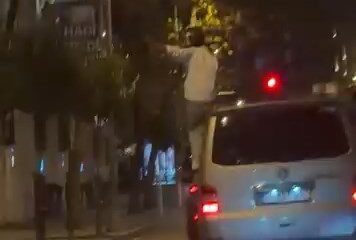 Beşiktaş Akaretler’de seyir halindeki minibüsün sürücüsü ve yanındaki kişi yüksek sesle müzik açtı. Başında kask bulunan bir kişi araç camından sarkarak dans ederken, diğer kişi de...