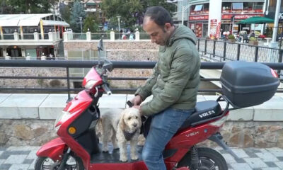 GÜMÜŞHANE’de özel güvenlik görevlisi Yılmaz Odabaş, sahiplendiği poodle cinsi köpeğini elektrikli motosikletiyle gezdiriyor. İşe de köpeğiyle gidip gelen Odabaş, “Kendi kendine motora biniyor. Ben inmediğim müddetçe...