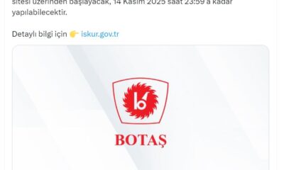 Bakanlığın sosyal medya hesabından yapılan açıklamada, “BOTAŞ bünyesinde istihdam edilmek üzere 223 yeni personel alımı gerçekleştirilecektir. Başvurular, 10 Kasım 2025 tarihinde Türkiye İş Kurumu (İŞKUR) internet...