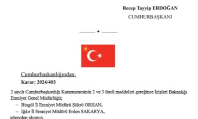Cumhurbaşkanı Recep Tayyip Erdoğanın imzası ile Resmi Gazete’de yayımlanan atama kararlarına göre; Devlet Denetleme Kurulu (DDK) üyeliklerine ve 6 ilin emniyet müdürlüklerine atamalar ve görevden almalar...