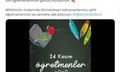 Cumhurbaşkanı Recep Tayyip Erdoğan, 24 Kasım Öğretmenler Günü dolayısıyla bir mesaj paylaştı. Erdoğan, sosyal medya hesabı üzerinden yaptığı paylaşımda “Bilgiyi hikmetle yoğurup kalpleri terbiye eden birer...