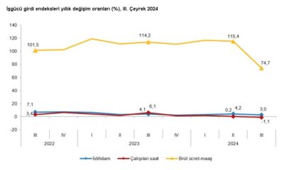 TÜİK, yılın 3üncü çeyreğine ilişkin iş gücü girdi endekslerini açıkladı. Buna göre; sanayi, inşaat ve ticaret-hizmet sektörleri toplamında istihdam endeksi, bir önceki yılın aynı dönemine göre...