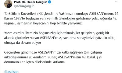 Savunma Sanayii Başkanı Görgün, sosyal medya hesabından yaptığı açıklamada, “Türk Silahlı Kuvvetlerini Güçlendirme Vakfımızın kuruluşu ASELSANımızın, 14 Kasım 1975te başlayan yerli ve milli teknolojiler geliştirme yolculuğunda...