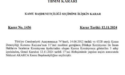 Resmi Gazete’de yayımlanan Türkiye Büyük Millet Meclisi (TBMM) kararına göre, Türkiye Cumhuriyeti Anayasasının 74üncü, 14 Haziran 2012 tarihli ve 6328 sayılı Kamu Denetçiliği Kurumu Kanununun 11inci...
