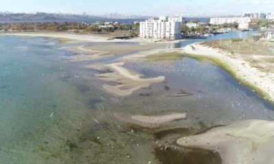 Küçükçekmecedeki Menekşe Sahilinde deniz suyunun çekilmesi nedeniyle küçük kum adacıkları oluştu. Sahil boyunca oluşan adacıklar havadan görüntülendi. Geçen seneye göre deniz suyunun daha fazla çekildiğini belirten...