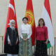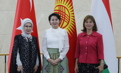 Kırgızistan Cumhurbaşkanının eşi Aygül Caparova, Kırgızistana bugün resmi ziyaret gerçekleştiren Cumhurbaşkanı Erdoğanın eşi Emine Erdoğan ile Macaristan Başbakanı Viktor Orbanın eşi Aniko Levainin onuruna akşam yemeği...