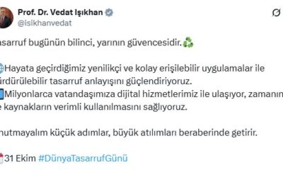 Bakan Işıkhan, sosyal medya hesabından yaptığı paylaşımda, “Tasarruf bugünün bilinci, yarının güvencesidir. Hayata geçirdiğimiz yenilikçi ve kolay erişilebilir uygulamalar ile sürdürülebilir tasarruf anlayışını güçlendiriyoruz. Milyonlarca vatandaşımıza...