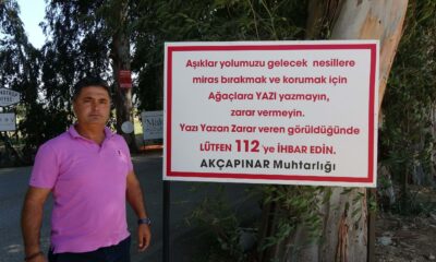Sakar Geçidinden indikten sonra Gökovayı Marmarise bağlayan ve Aşıklar Yolu olarak anılan Ulanın Akçapınar Mahallesindeki Cumhuriyet Caddesinde, 200den fazla okaliptüs ağacının bazıları, duyarsız kişiler tarafından yazı...