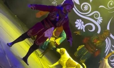 Bornova Açık Hava Tiyatrosunda sahnelenen zeybek gösterisi sırasında sahneye çıkan can dostu, izleyicilere ve dansçılara tebessüm ettirdi. Ekibin gösterisi sırasında sahnede dolaşarak dansçıları koklayan sevimli sokak...