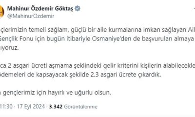 Aile ve Sosyal Hizmetler Bakanı Mahinur Özdemir Göktaş, sosyal medya hesabından yaptığı açıklamada, “Gençlerimizin temeli sağlam, güçlü bir aile kurmalarına imkan sağlayan Aile ve Gençlik Fonu...