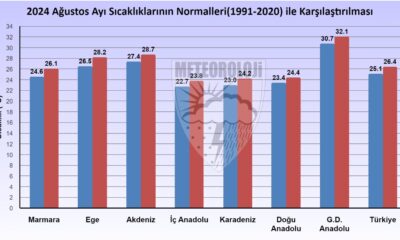 Meteoroloji Genel Müdürlüğü, 2024 yılı Ağustos ayı sıcaklık analizi raporunu yayımladı. Buna göre 2024 yılı Ağustos ayında ortalama sıcaklıklar, Tekirdağ, Kırklareli, Sarıyer, Bilecik, Afyon, Dalaman, Antalya’nın...