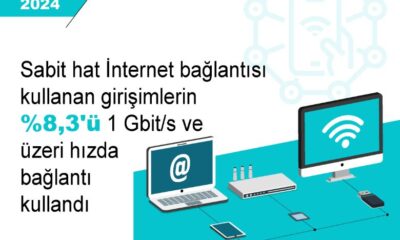 TÜİK, 2024 yılına ilişkin girişimlerde bilişim teknolojileri kullanım araştırması verilerini açıkladı. Buna göre; iş amaçlı internet kullanan girişimlerin yüzde 91i 2024 yılında internete erişimde sabit hat...