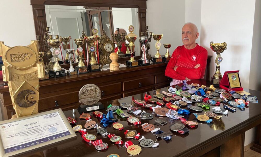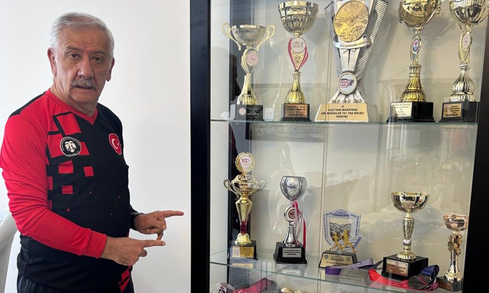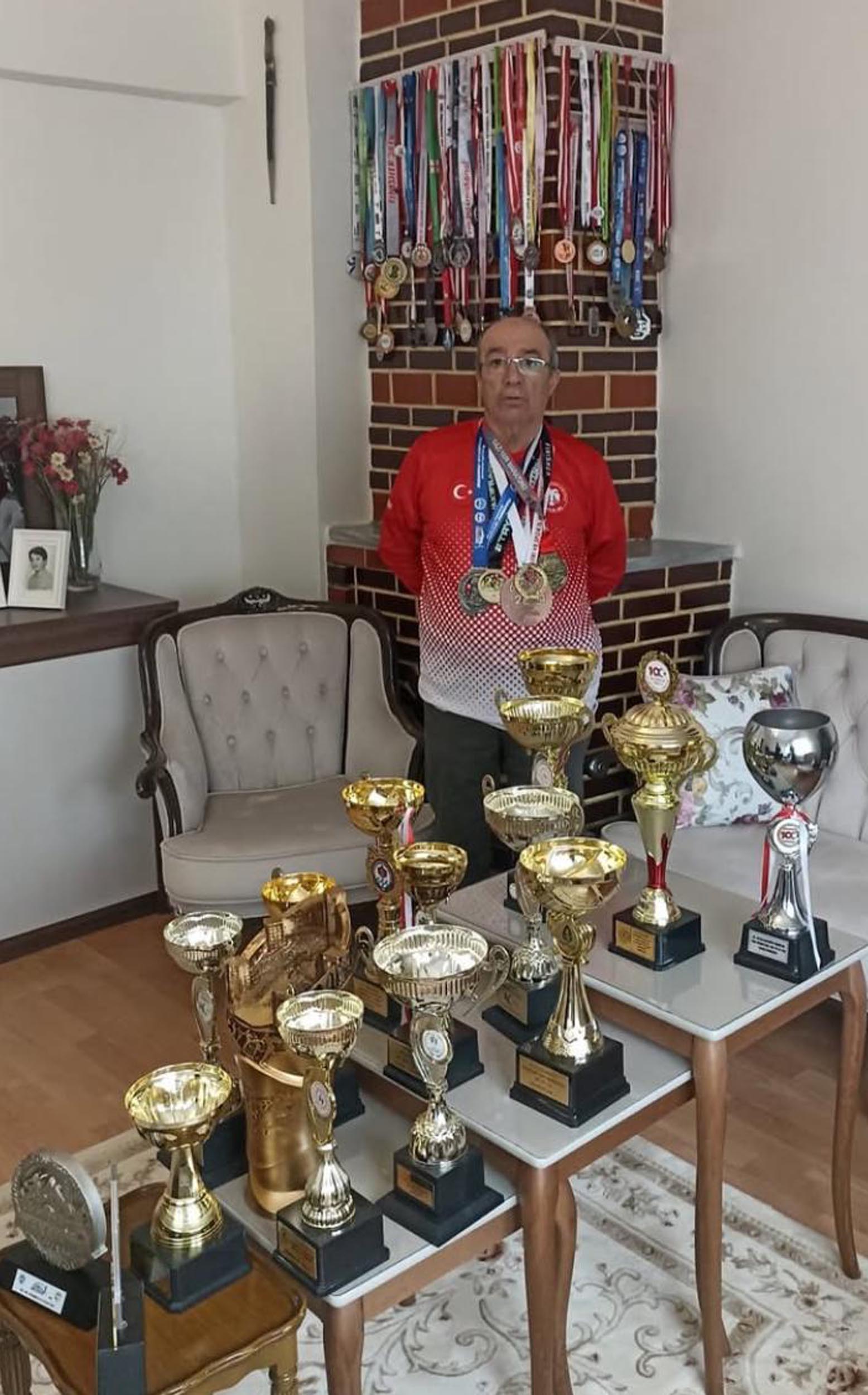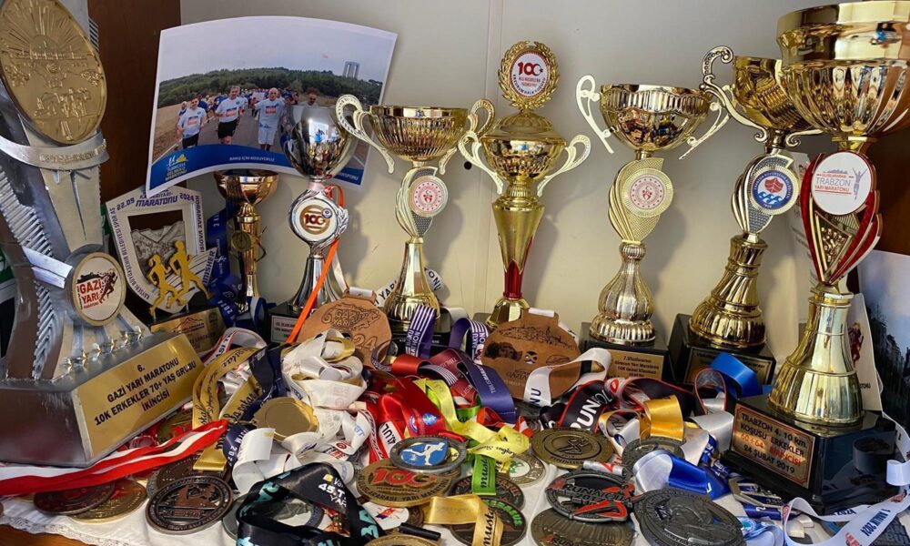 Eski bir sporcu olarak uzun süredir maraton koştuğunu belirten Yurdal Topçuoğlu (Fotoğraftaki), katıldıkları yarışlarda çok sayıda kupa ve madalya aldığını ifade etti. Fotoğraf: Erzurum,(DHA)