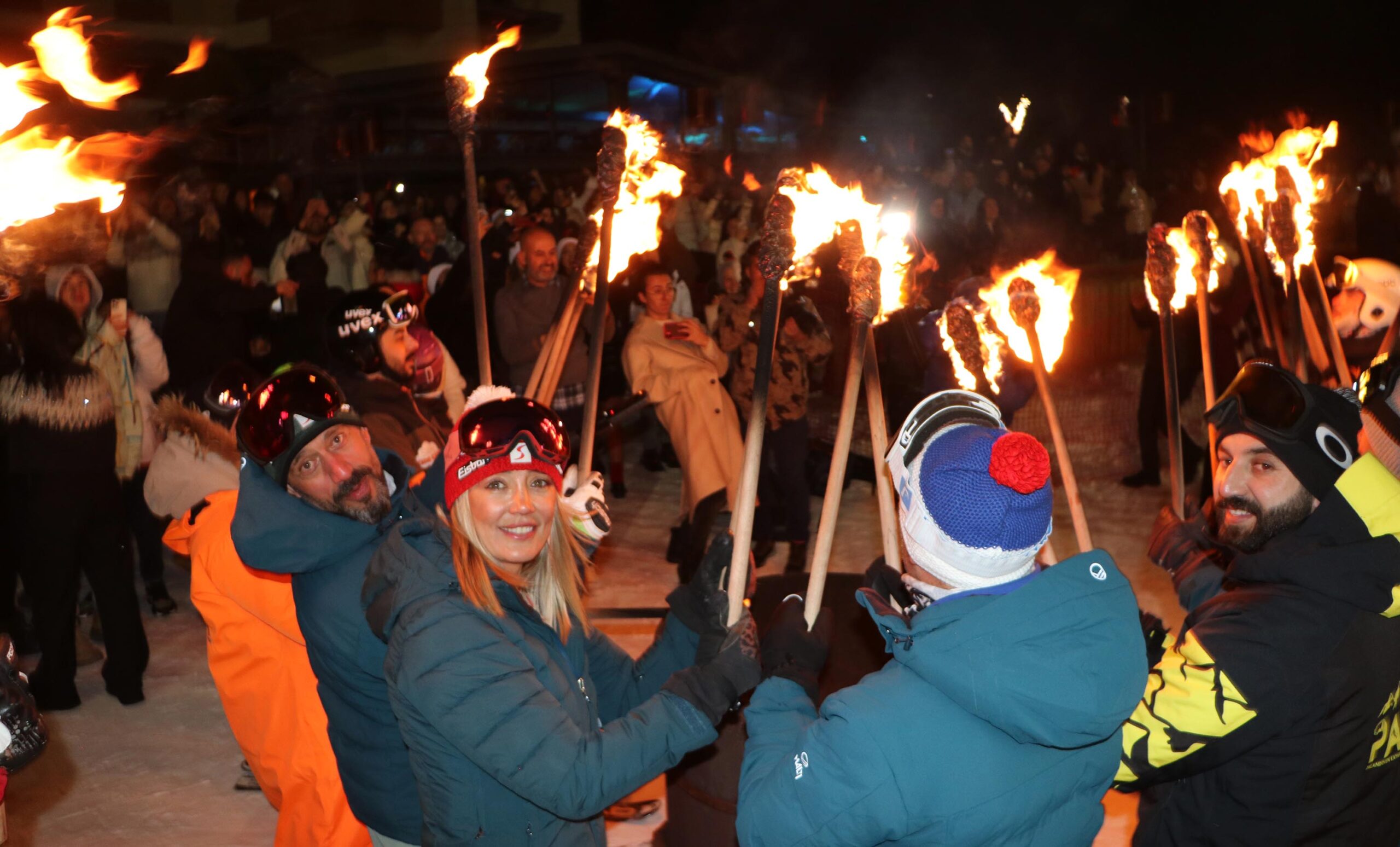 • Palandöken'e gelenler soğuk havaya rağmen dışarıda düzenlenen havai fişek gösterisi altında meşaleli kayakçıları izledi ve gönüllerince eğlendi. Fotoğraf: Turgay İPEK / ERZURUM, (DHA)