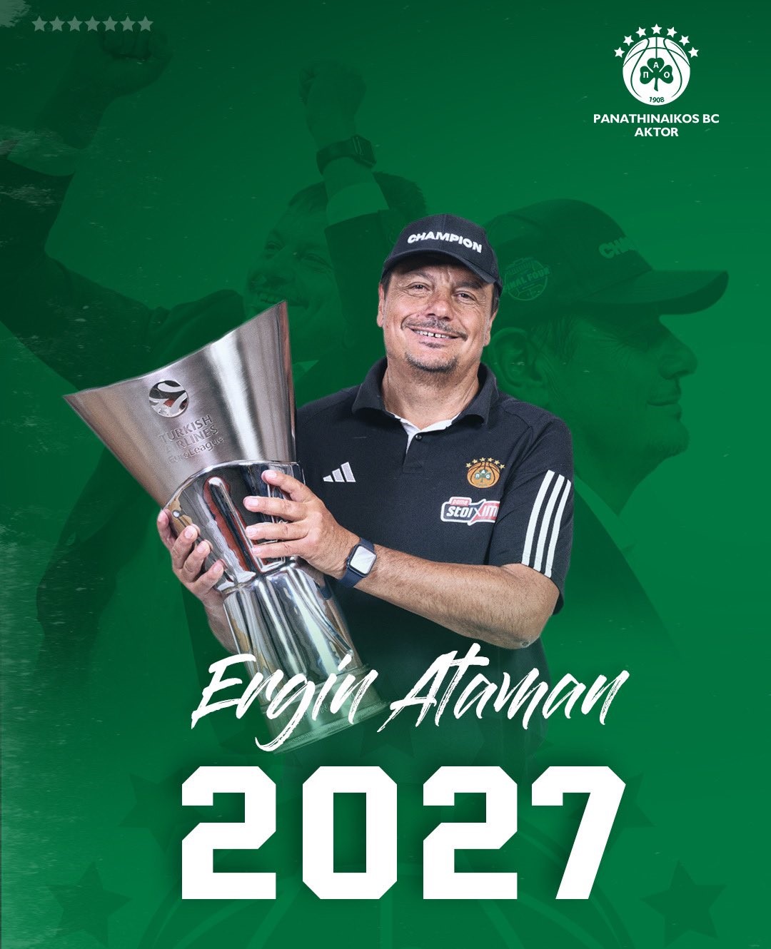 Geçtiğimiz sezon Panathinaikosu yıllar sonra EuroLeague ve Yunanistan Liginde şampiyon yapan başantrenör Ergin Ataman, Yunan ekibiyle sözleşmesini uzattı. Kulüpten yapılan açıklamada deneyimli koçun 3 yıllık yeni sözleşmeye imza attığı belirtilirken, Panathinaikos Başkanı Dimitris Giannakopoulos ise “Avrupanın en iyi koçu Ergin Ataman ile 3 yıllık yeni sözleşme imzaladığımızı duyurmaktan mutluluk duyarım” ifadelerinde bulundu.