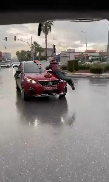 • Adana'da para istemek için hareket halindeki gelin arabasının kaputuna çıkan kişiye damat ve yakınları tarafından meydan dayağı atıldı. Fotoğraf: Adana, (DHA)