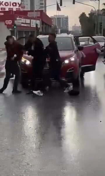 Olay, dün gündüz saatlerinde merkez Yüreğir ilçesi Karataş Bulvarı Regülatür Köprü Kavşağında meydana geldi. Bulvarda mendil sattığı öne sürülen bir kişi, iddiaya göre kırmızı ışıkta bir gelin arabasından para istedi. Yeşil ışık yanınca hareket eden gelin arabasının kaputuna çıkan kişi, araç üzerinde tutunarak para istemeye devam etti. Kavşağı geçtikten sonra sürücünün sağa çektiği gelin arabasından inen damat, para isteyen kişiyi tekme ve yumruklarla dövmeye başladı. Gelin konvoyundaki diğer araçlardan inen damadın yakınları da para isteyen kişiyi darbetti. Damadın uzaklaşmasının ardından yakınlarından dalak yiyen kişi, koşarak bölgeden uzaklaştı. Bu anlar, trafikte bulunan başka bir vatandaş tarafından cep telefonu kamerasıyla anbean kaydı alındı.