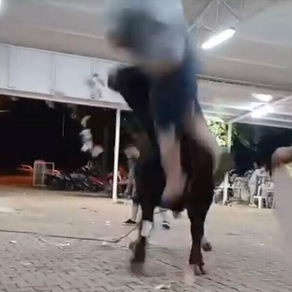 O anlar, etkinliği izleyen bir kişinin cep telefonu kamerasıyla kaydedildi. Görüntülerde, boğaya yaklaşan Yetimoğlunun boynuz darbesi aldığı ve düştüğü anlar görülüyor.