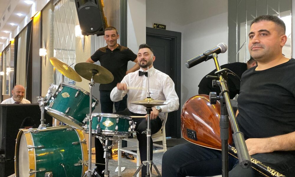 • Kocaeli Ambulans Servisi Başhekimliğinde eğitmen paramedik olarak görev yapan Karslı Ertunç Gökçek, asistan Dr. Büşra Gökçek'le düğününde baterinin başına geçti. Kars'ta bir salondaki düğünde damat bateri çaldı, gelin oynadı. Fotoğraf: Bedir ALTUNOK/Kars,