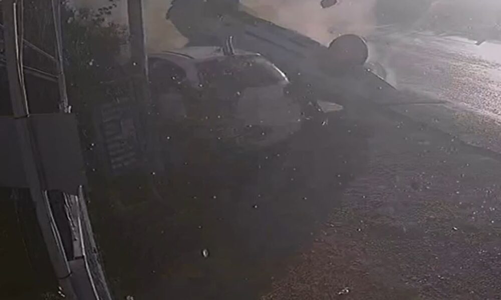 Park halindeki araca çarpan otomobildeki 2 kişi yaralandı; kaza kamerada