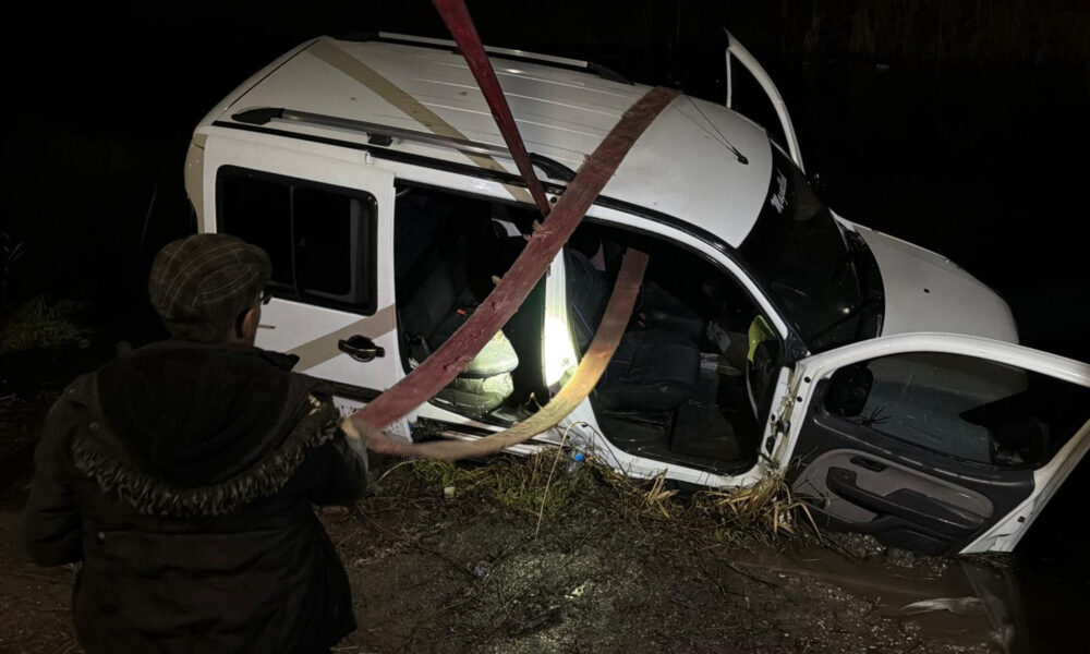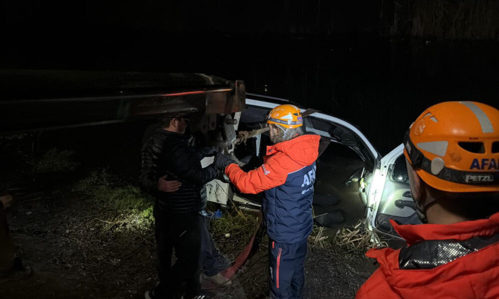Park halindeki hafif ticari araç, Porsuk Çayı’na düştü