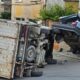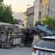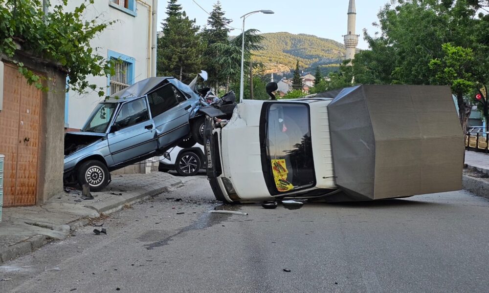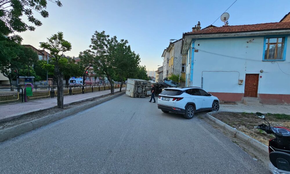 Park halindeki otomobile çarpıp devrilen kamyonetin sürücüsü yaralandı