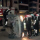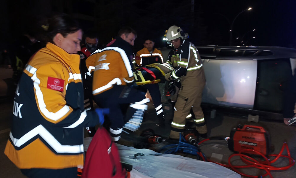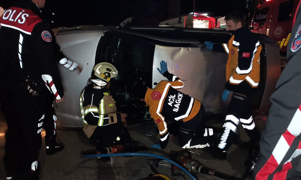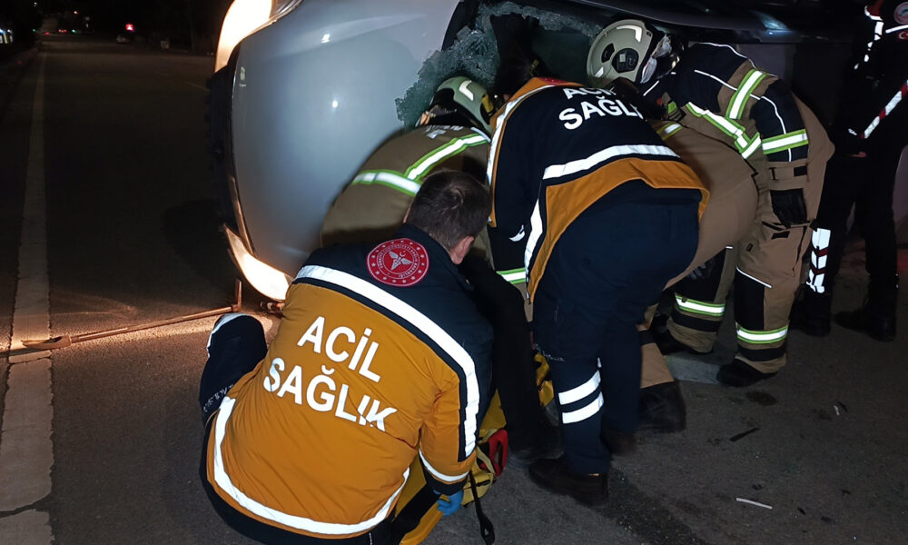 Park halindeki otomobile çarpıp takla atan araçta mahsur kaldı