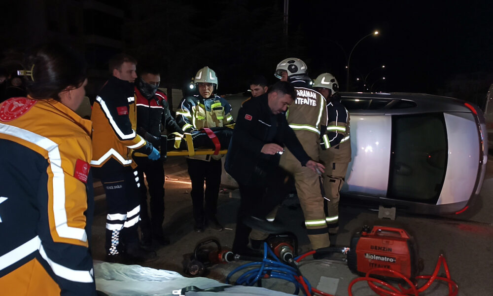 Kaza, saat 19.00 sıralarında Zembilli Ali Efendi Mahallesi Alpaslan Türkeş Bulvarında meydana geldi. Fatma Kara yönetimindeki 70 EA 864 plakalı otomobil, sürücüsünün kontrolünden çıkıp önce park halindeki bir otomobile çarptı, ardından takla attı. Yaralanan sürücü Kara, aracı içinde sıkışıp mahsur kaldı. İhbar üzerine bölgeye polis, sağlık ve itfaiye ekipleri sevk edildi. Polis, yolu ulaşıma kapattı. Araç içinde sıkışan Kara, itfaiye ekiplerinin yaklaşık 20 dakika süren müdahalesi sonucu çıkarıldı. Yaralı Kara, ambulansla Karaman Eğitim ve Araştırma Hastanesine kaldırıldı. Polis kazaya karışan otomobillerin kaldırılmasının ardından yolu yeniden ulaşıma açtı.